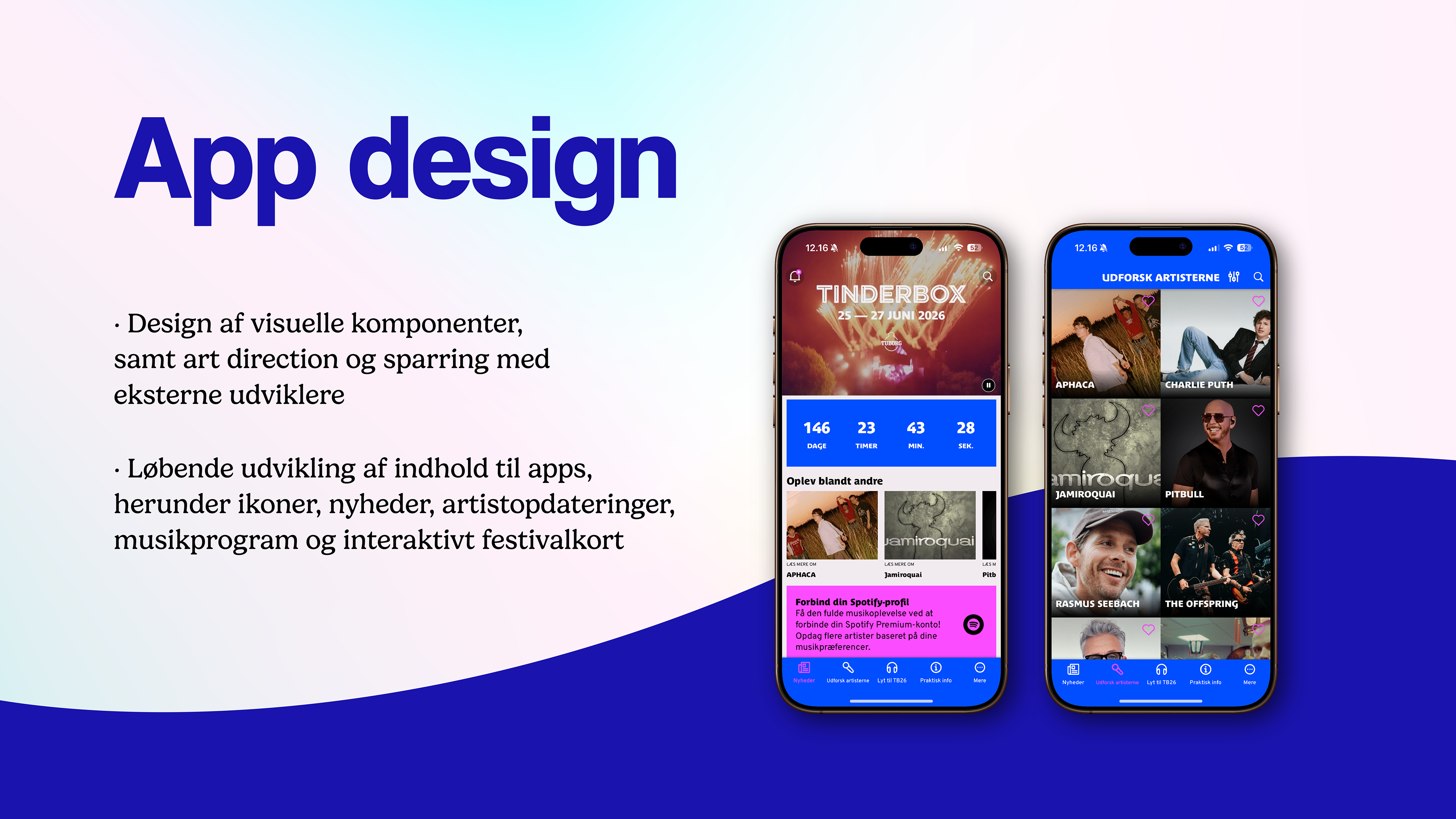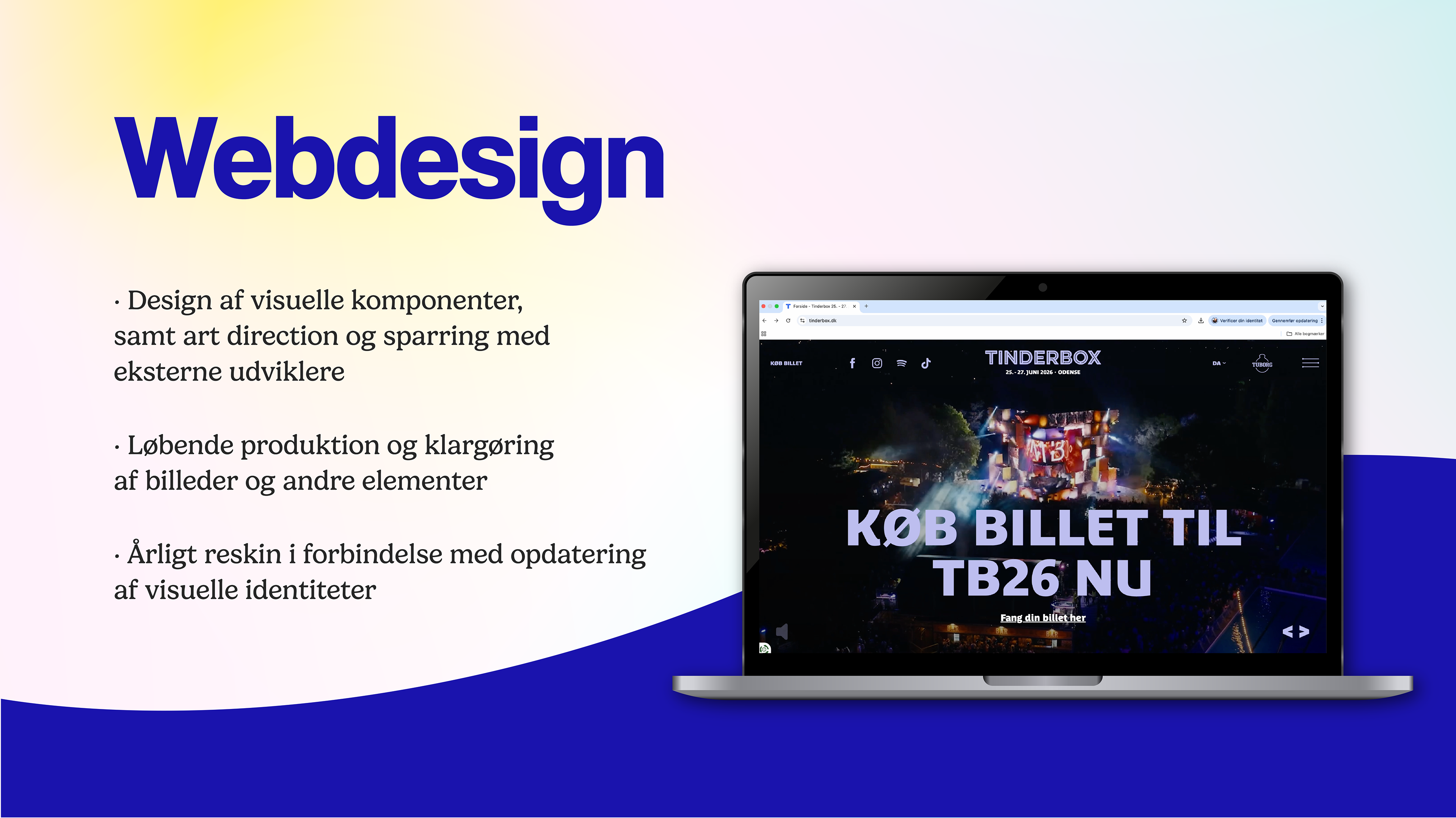 Hos DTD Group havde jeg ansvar for udvikling af kreativer og vedligeholdelse af visuelle identiteter på tværs af digitale og fysiske platforme. Her har jeg arbejdet strategisk med sociale medier, kampagner, outdoor, website- og appdesign samt udvikling af engagerende content i form af grafik, video og animation.